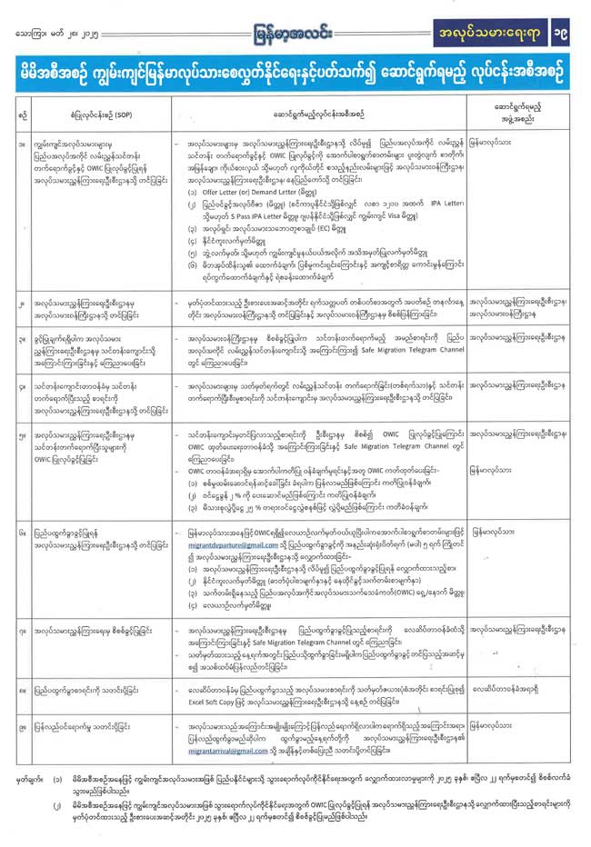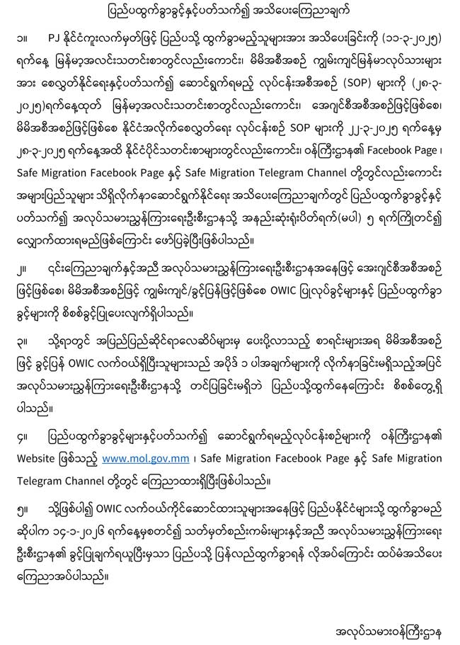 ပြည်ပထွက်ခွာခွင့်နှင့်ပတ်သက်၍ အသိပေးကြေညာချက်