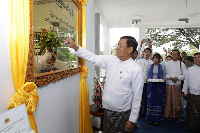 The second part of the ceremony was held at the Academy premises, with the symbolic sprinkling of scented water on the Academy’s commemorative plaque by Deputy Prime Minister and Union Minister U Than Swe, together with Member of the State Administration Council U Wunna Maung Lwin, and Union Minsters U Ko Ko Hlaing and Dr. Nyunt Pe.