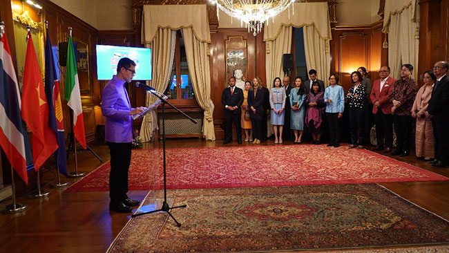The ASEAN Committee in Rome (ACR) hosted the celebration of the 58th ASEAN Day on 3 October 2025, and the Embassy of the Republic of the Union of Myanmar in Rome joined fellow members of ASEAN Embassies and ASEAN Dialogue Partner embassies. The event took place at the Royal Thai Embassy, the current chair of the ACR, bringing together Ambassadors, senior diplomats, and distinguished guests in a vibrant display of regional unity and cultural exchange.