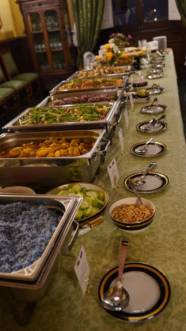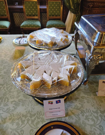 This year, the event reflected the cultural richness of ASEAN, featuring a buffet of traditional dishes from each ACR member state. Representing Myanmar’s culinary heritage, the Embassy presented its signature delicacies — Snow Fungus and Shrimp Salad and Mango Coconut Jelly.